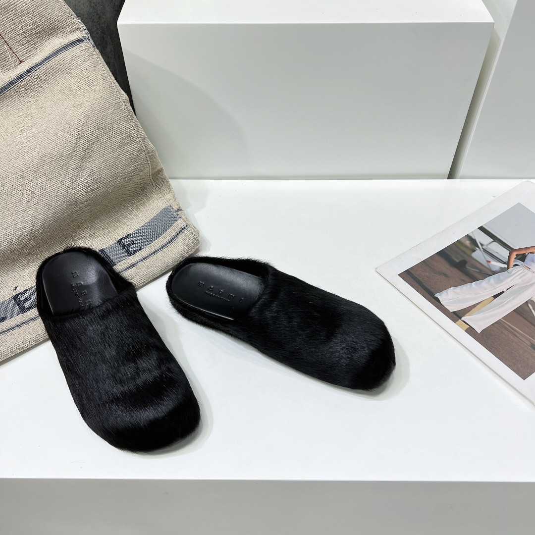 MARNI FUCHSIA LONG-HAIR CALFSKIN FUSSBETT SABOT